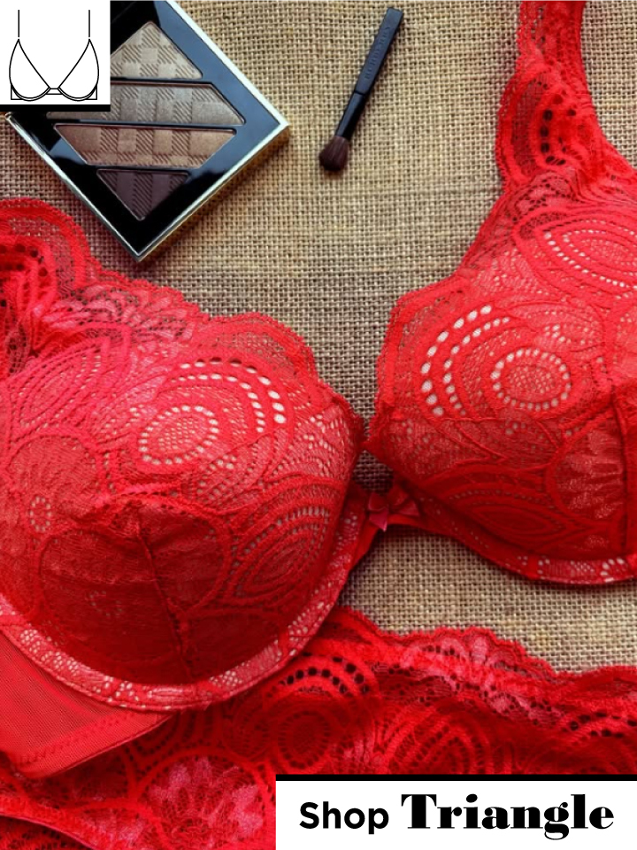 Add some glamour to your wardrobe with this sexy, modern triangle lace bra while achieving the famou…